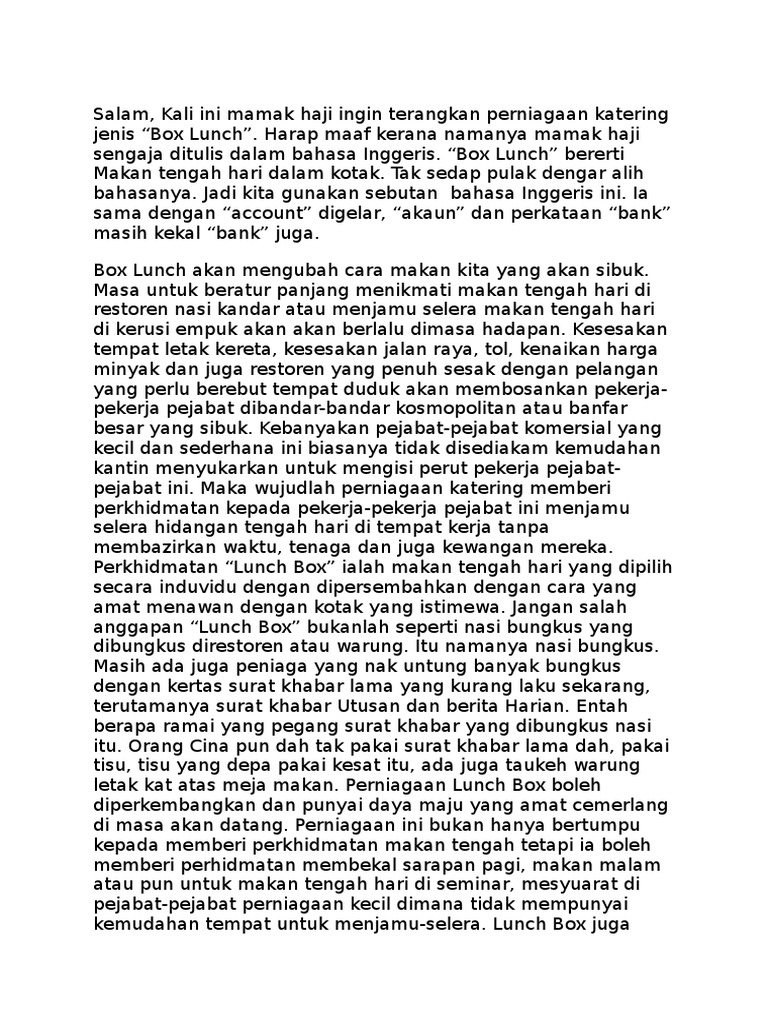 Please bring a lunch rather than leave the convention site to obtain a meal during the noon break. Lebih hebat lagi jika ejaan مالسيا ini dieja secara mengundur nescaya terbitlah kalimah اسلام. Apa itu lunch Kuliner.